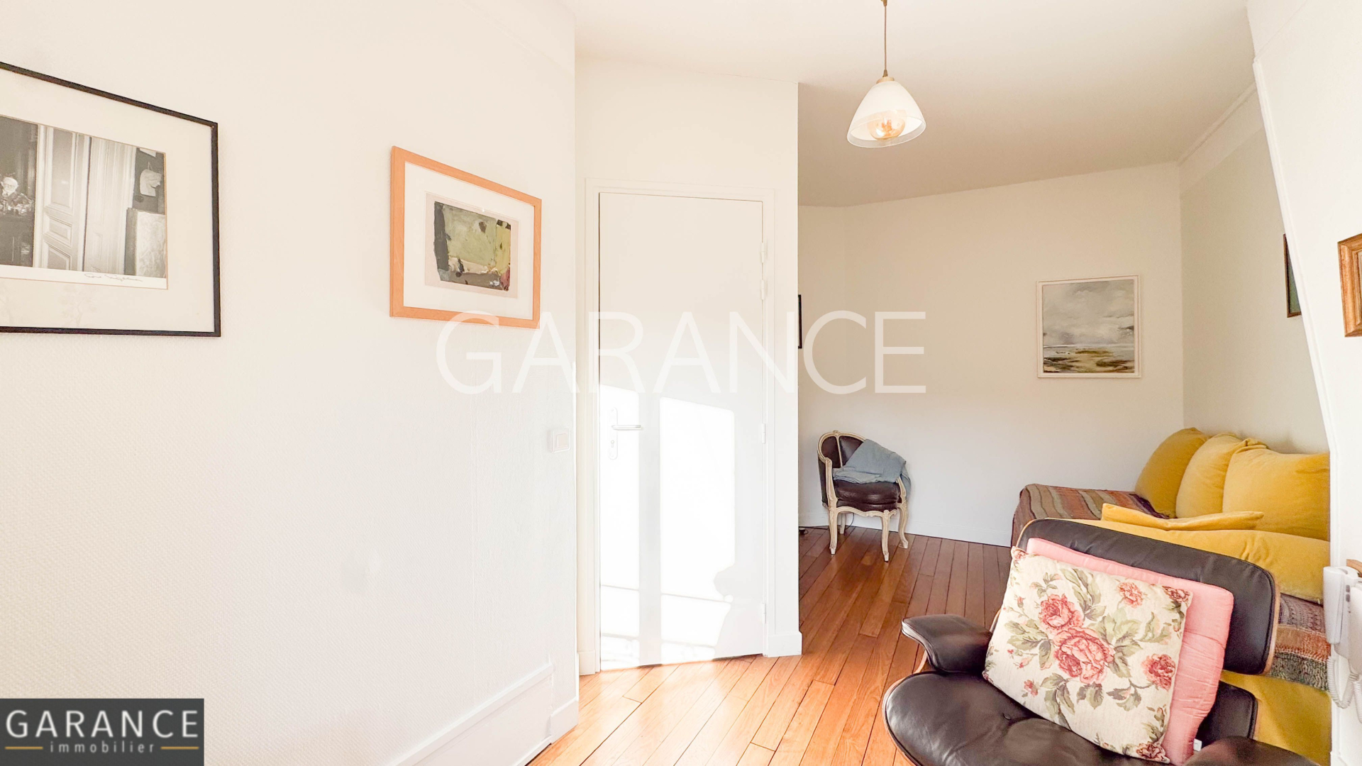Il comprend une entrée desservant un séjour de 14m² environ donnant sur un jardin, une cuisine indépendante et une salle d'eau avec vélux fenêtre également sur jardin. Il ne comporte aucun mur porteur, l'entrée le séjour et la cuisine peuvent être réunis.