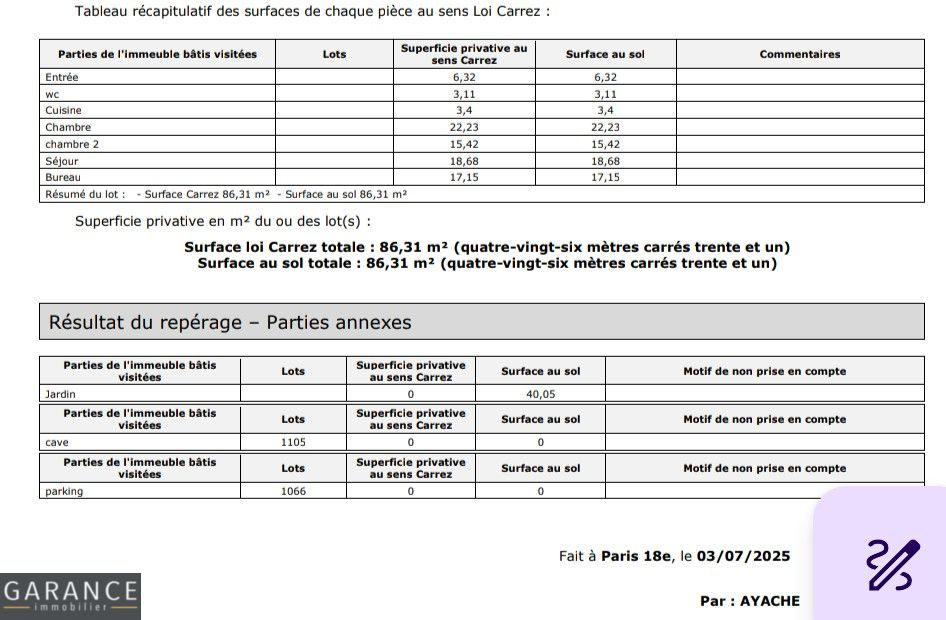 Pondéré : 86,31 m² + 40 m² de jardin PRIVATIF.
